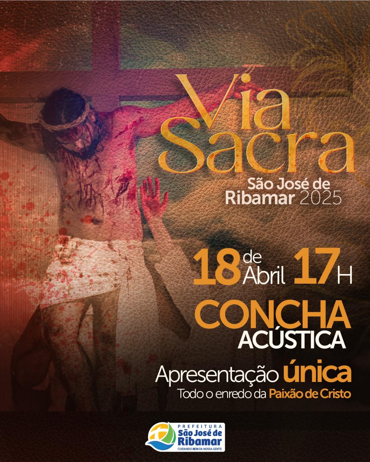 A tradição da Sexta-feira Santa será revivida com emoção, arte e fé em São José de Ribamar. A Prefeitura, por meio da Secretaria Municipal de Cultura e Turismo, realiza nesta sexta-feira, 18 de abril, às 17h, a apresentação única da Via Sacra 2025, encenada na Concha Acústica, em frente à